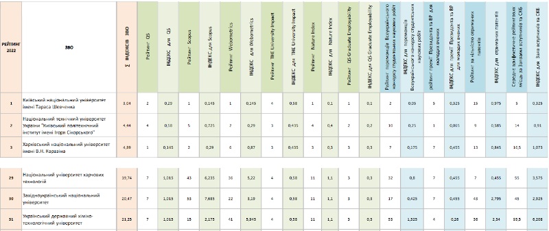 Укладачі рейтингу враховували всебічну діяльність університетів і сучасні тенденції розвитку вищої освіти, що зазнає глибинних змін у результаті впливу пандемії COVID-2019 і повномасштабного воєнного вторгнення рф. Також важливою складовою рейтингування була пріоритетність євроінтеграційних процесів, тому вагові коефіцієнти міжнародних показників діяльності університетів були встановлені вищими за вагові коефіцієнти національних показників.