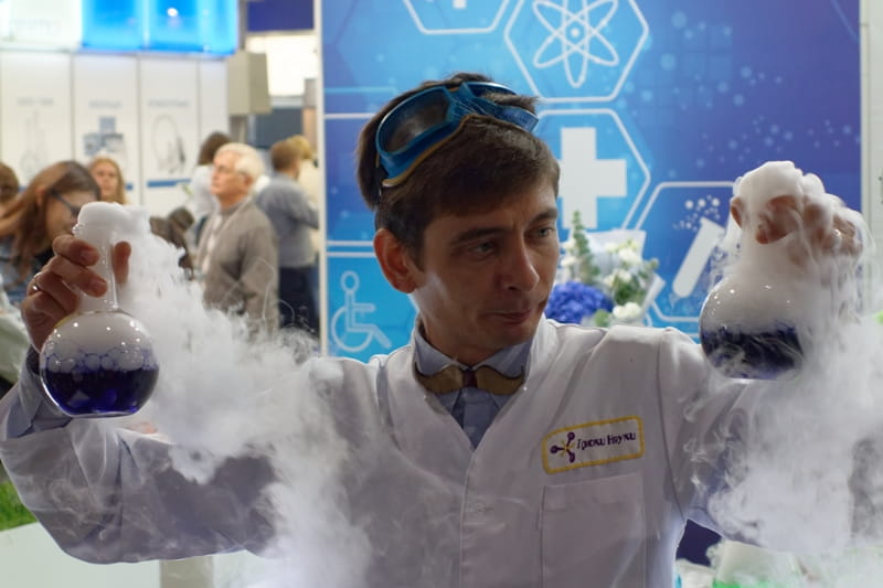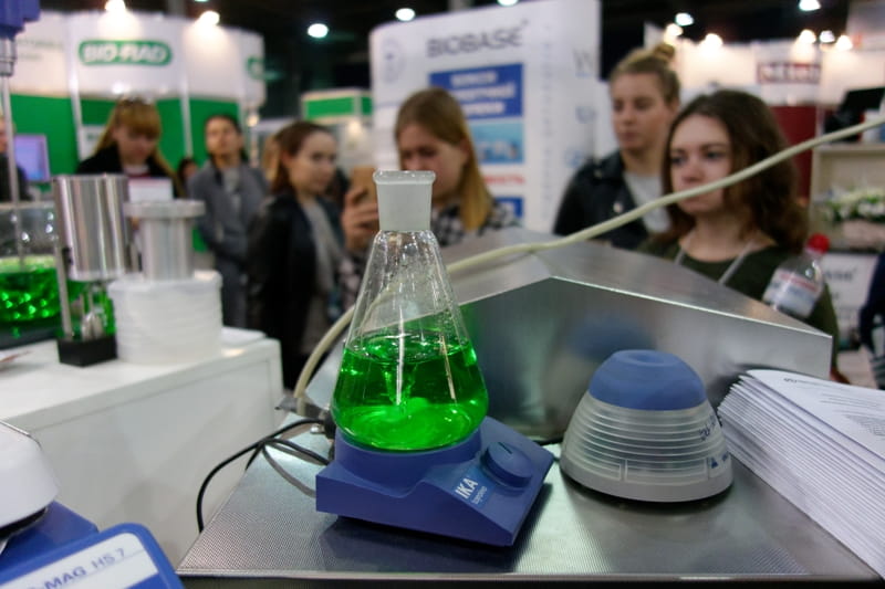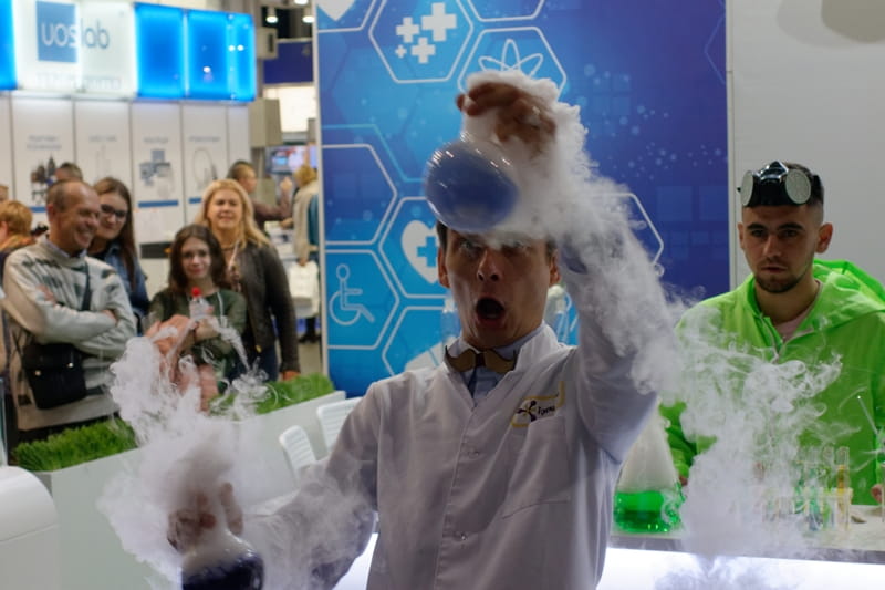 Студенти і викладачі були приємно здивовані якісним обладнанням, яке випускає український виробник Укроргсинтез – від лабораторних меблів до різноманітних сухожарових шаф і таких часто потрібних лабораторних мішалок. Не обійшлось і без театралізованих майстер-класів – всіх відвідувачів захопили чудові хімічні досліди, що демонструвалися на стендах компаній.