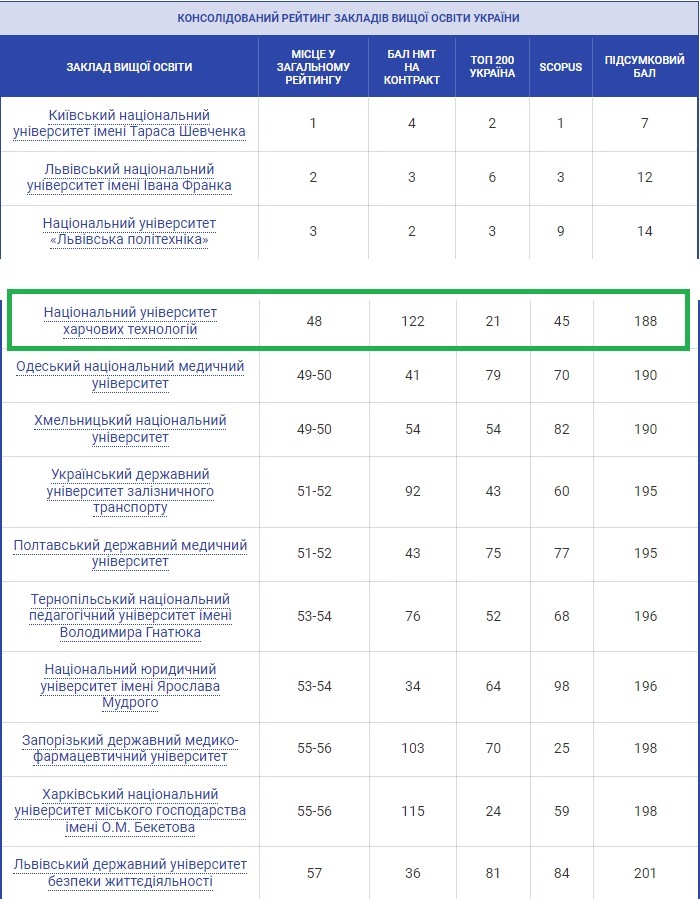 У рейтинговій таблиці наш університет посів 48 місце серед 235 закладів вищої освіти, включених до рейтингу.
