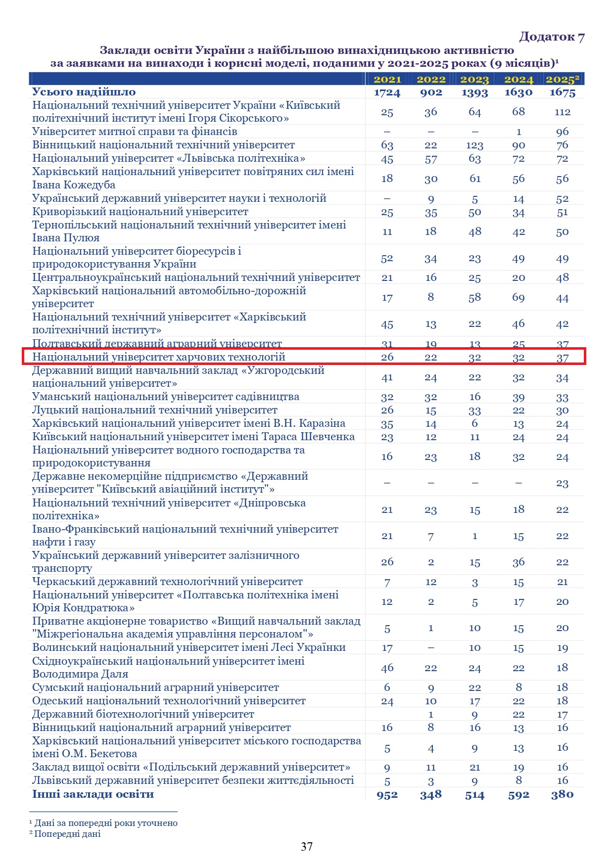 Приємно, що наш колектив є дотичним до цього успіху. За перші дев’ять місяців 2025 року вченими й інноваторами НУХТ було подано37 заявок на винаходи та корисні моделі, що вивело наш університет на 13-ту позицію серед закладів вищої освіти з найвищою винахідницькою активністю, підпорядкованих МОН. Наразі УКРНОІВІ готує бюлетень за підсумками року, тож ця цифра не остаточна.