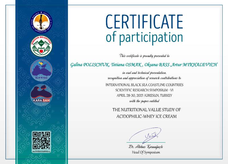 У цьому заході взяли участь і науковці кафедри технології молока і молочних продуктів та Проблемної науково-дослідної лабораторії нашого університету – Артур Михалевич, Оксана Басс, Тетяна Осьмак і Галина Поліщук. У своїй доповіді «Food value study of acidophilic-whey ice cream» вони поділилися результатами досліджень, які проводили в межах науково-дослідної теми «Реалізації ресурсозберігаючих методів модифікації функціонально-технологічних характеристик молочної сироватки в технологіях харчових продуктів цільового призначення». Доповідь викликала жваве обговорення та схвальні відгуки присутніх.