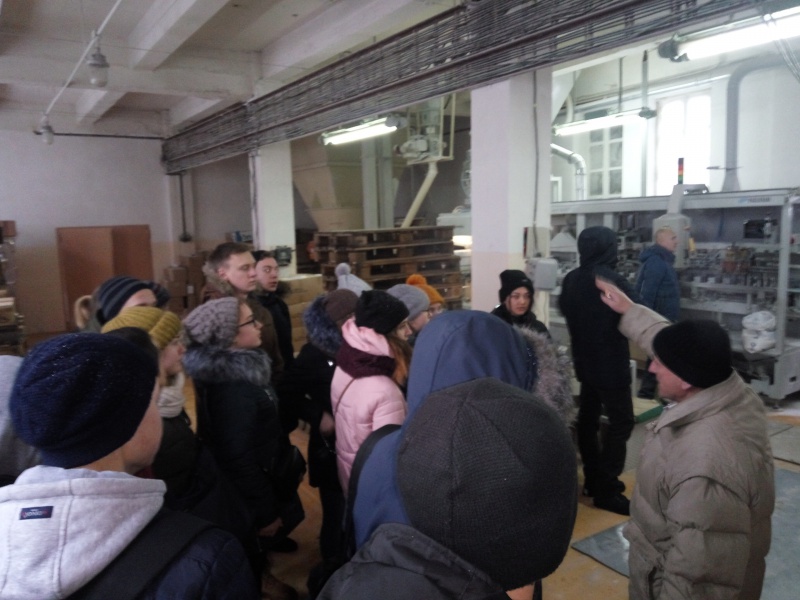У реальних умовах виробництва студенти змогли побачити в дії лінію фасування борошна в пакети. В свою чергу, завідувач кафедри Олег Шаповаленко, крім технологічних питань, акцентував увагу студентів на перевагах роботи на підприємствах галузі хлібопродуктів, на можливості проектувати такі важливі для населення об'єкти, а також розповів про особливості роботи аспіраційного обладнання.