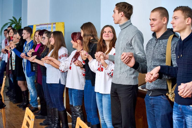 Із почуттям патріотизму і національної свідомості студенти та викладачі, взявшись за руки, об’єднались у живий ланцюг єдності нації, солідарності своїх прагнень жити у новій сильній Україні.