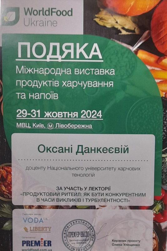 29-31 жовтня 2024 року у Міжнародному виставковому центрі відбулася значна подія для шанувальників ритейлу – виставка World Food Ukraine 2024. Крім великої експозиції, форум мав насичену ділову й наукову програми, до участі у яких були запрошені фахівці нашого університету.