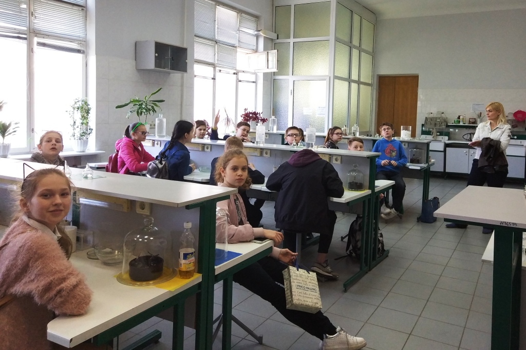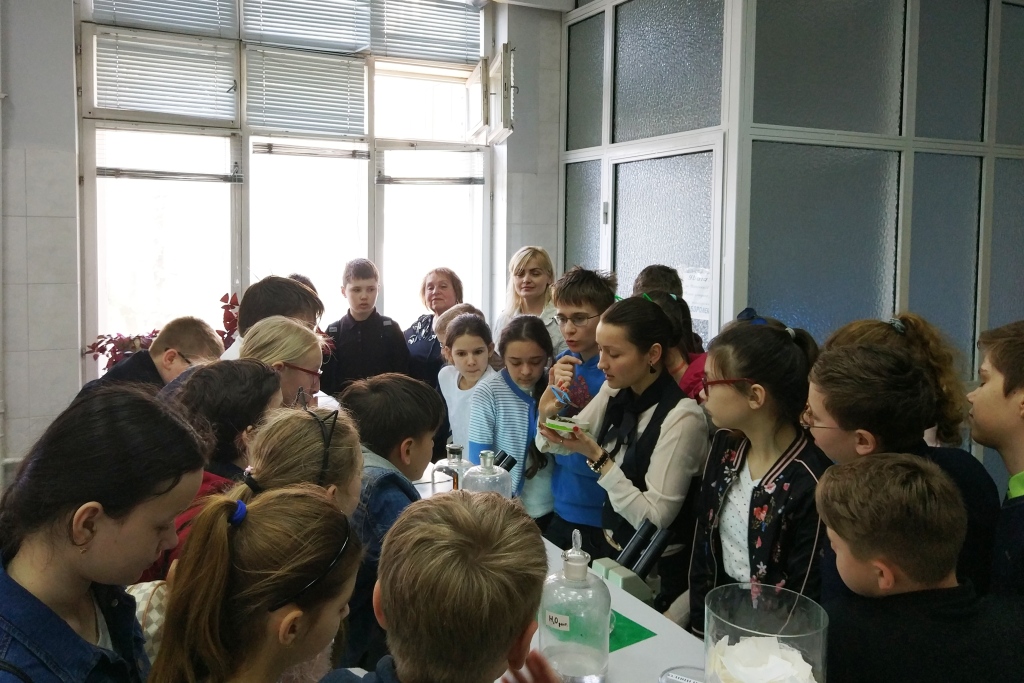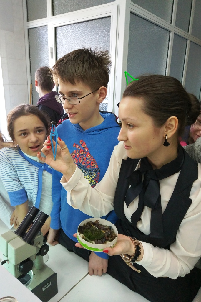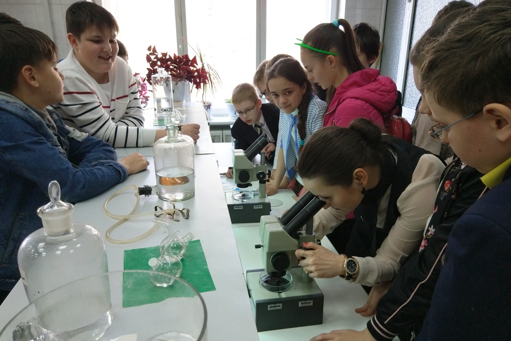 На початку екскурсії, яку для майбутніх біотехнологів провела асистент кафедри Тетяна Белемець, разом із допитливими учнями з’ясували, де у повсякденному житті людина зіштовхується з продуктами діяльності біотехнології, та як часто зовсім не усвідомлює наскільки звичні речі були б недоступними за відсутності біотехнології. Незважаючи на ще зовсім юний вік гостей, абсолютно кожний із них намагався навздогін роздивитися усе обладнання у мікробіологічній лабораторії, а також усі чашки Петрі з культурами міцеліальних грибів і бактерій, щоб якомога сильніше відчути на собі, «що означає бути біотехнологом». Найбільший захват учнів викликали різноманітні комахи, яких з голови до «волохатих п’ят» юні вчені роздивлялися у мікроскопи, а найбільшу кількість обійм отримала неймовірно мила в’язана бактерія, зроблена руками студентів кафедри біотехнології і мікробіології.