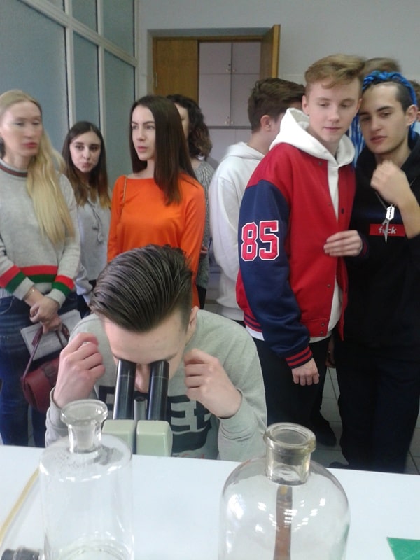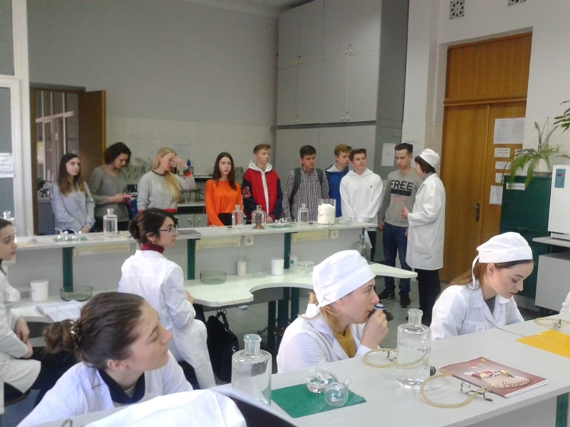А кафедра біотехнології і мікробіології з допомогою доцента Вікторії Красінько ознайомила гостей з прекрасними навчальними і науковими лабораторіями, надала можливість взяти участь у практичному занятті разом зі студентами. Також учні подивились чудовий ролик про «нелегке» студентське життя.
