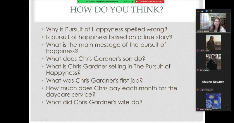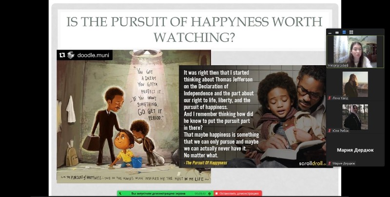 Якщо вам потрібно отримати ударну дозу мотивації, сміливо вмикайте «У гонитві за щастям». Цей фільм вразив студентів групи ТУ-1-12а факультету готельно-ресторанного та туристичного бізнесу імені проф. В.Ф. Доценка і змусив переглянути своє ставлення до багатьох речей. Не здаватися за жодних обставин – цей слоган повинен звучати у кожному з нас.