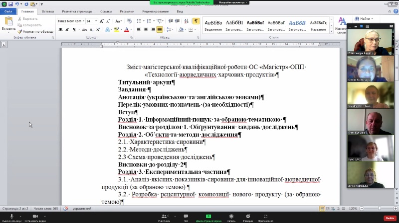 Робоча група зібралася для обговорення шляхів удосконалення змісту кваліфікаційних робіт магістрантів спеціальності 181 «Харчові технології», освітньо-професійної програми «Технології аюрведичних харчових продуктів».