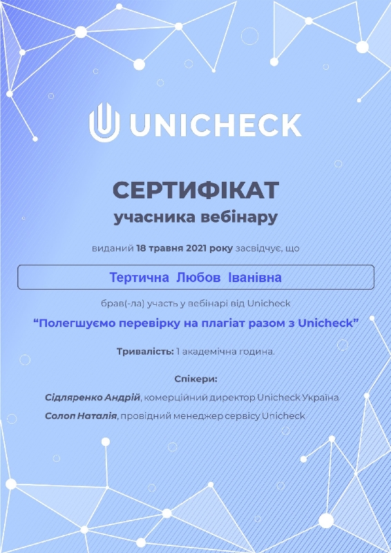 Викладачки кафедри економіки праці та менеджменту Навчально-наукового інституту економіки і управління НУХТ узяли участь у вебінарі «Полегшуємо перевірку на плагіат разом із Unicheck».