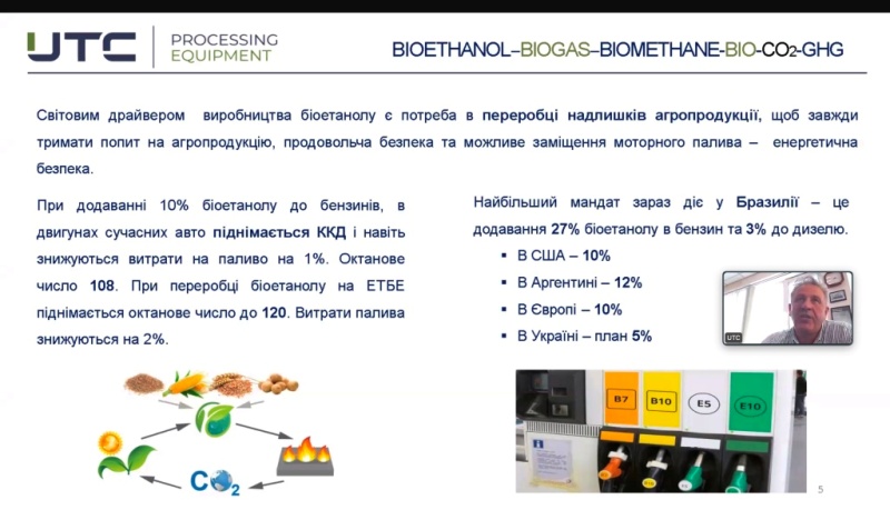 Спікер розповів, які культури можна використовувати в нашій країні з метою отримання альтернативного палива та які перспективи є в майбутньому в цьому напрямку. Так, Україна має дешеву сировину і необмежений ресурс біомаси (найбільша кількість органічних відходів в ЄС) для енергетичних потреб.