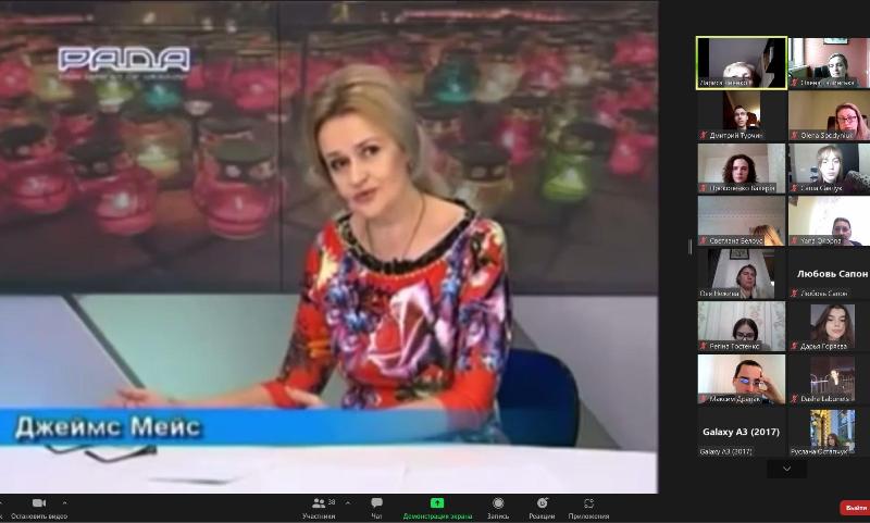 Учасники заходу також переглянули уривки інтерв’ю з Іриною Фаріон про Джеймса Мейса. Далі всі мали змогу висловитися, обмінятися думками щодо ролі американця в українському суспільстві, який, не будучи етнічним українцем, так полюбив Україну, що її пам’ять і біль стали його власними.