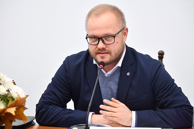 Далі звітували представники закладів вищої освіти, в яких вже створені Центри. Про заходи, виконані нашим вишем у рамках роботи Центру колективного користування науковим обладнанням «Лабораторія біобезпеки, якості харчової продукції та безпеки харчування» доповів координатор його діяльності Андрій Маринін. Він розповів про наявні здобутки, висвітлив завдання та зупинився на проблемах й наголосив на необхідності вирішувати їх спільно.
