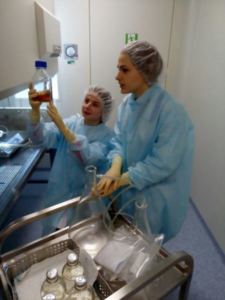 У мікробіологічній лабораторії наші практиканти перевіряли продукцію (проміжний та остаточний мікробіологічний контроль продукції) та здійснювали моніторинг чистих приміщень. На ПАТ «Фармак» локалізовані усі класи чистоти, а також розміщені локальні зони чистоти А. Студенти мали можливість працювати з відповідною документацією – протоколами проходження кваліфікаційних випробувань персоналу з метою одержання дозволу працювати у класі чистоти В, готувати поживні середовища, заповнювати необхідну документацію. У студентів була можливість опанувати роботу в мікробіологічному боксі з локальною зоною чистоти А та взяти участь у приготуванні поживних середовищ.