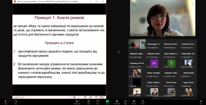 Наші здобувачі ознайомилися з теоретичними засадами та практичними підходами до впровадження системи НАССР, ключовими принципами її побудови, а також прикладами аналізу та діагностики технологічних процесів у ресторанних закладах із урахуванням вимог до безпечності харчової продукції.