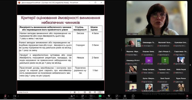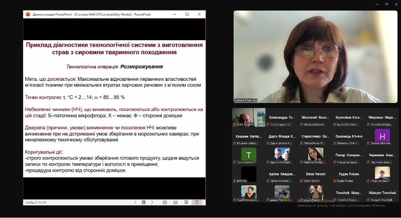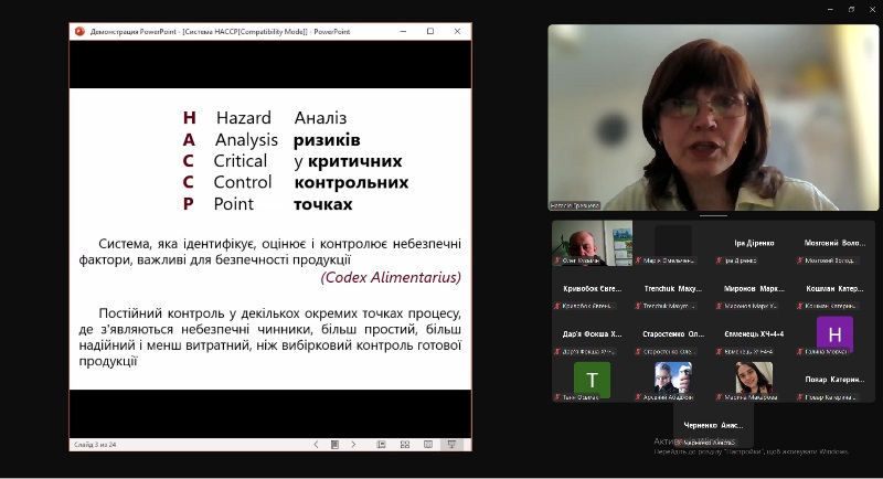 Днями на запрошення професора кафедри Олега Кузьміна та асистентки Марії Омельченко у межах дисципліни «Управління якістю продукції та послуг ресторанного господарства» онлайн-лекцію на тему «Розробка і впровадження системи управління харчовою безпекою на основі принципів НАССР в закладах ресторанного господарства» бакалаврам освітньо-професійної програми «Технології харчування» прочитала професорка кафедри готельно-ресторанного бізнесу та харчових технології Навчально-наукового інституту «Каразінський інститут міжнародних відносин та туристичного бізнесу» Харківського національного університету імені В.Н.Каразіна, кандидатка технічних наук Наталія Гревцева.