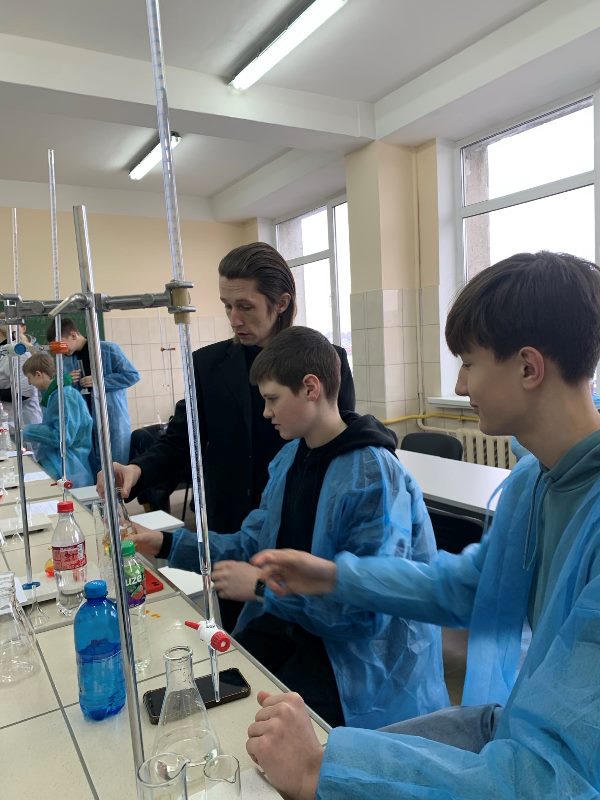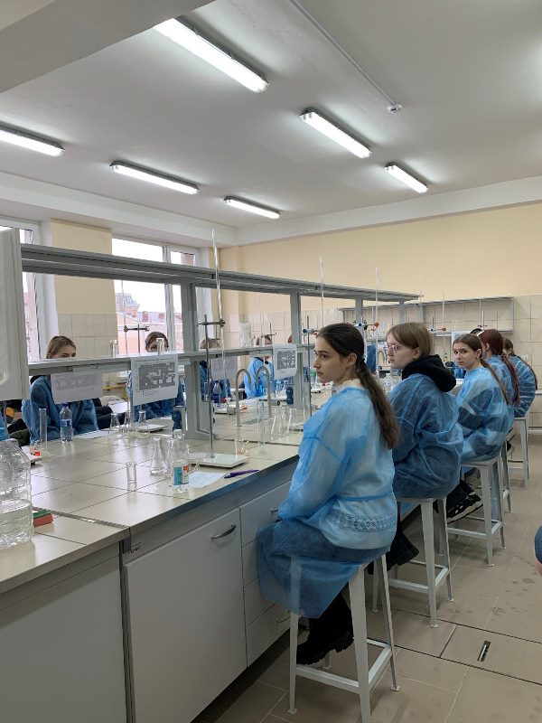 Після ознайомлення з правилами поведінки в лабораторії, гості приступили до роботи. На уроці хімії доценти кафедри Віра Іщенко, Михайло Овчаров, Тетяна Петренко, Олег Кроніковський і Олександр Макаренко, після теоретичного обговорення теми заняття і детального розгляду методики виконання дослідів, запропонували гостям-дослідникам проаналізувати різні зразки води, в тому числі принесені самими школярами. Зацікавленість юних хіміків була неймовірна! Наші викладачі були вражені кількістю запитань, підготовкою і хистом гостей! Спілкування було дуже продуктивним і цікавим як для учнів, так і для наших колег.