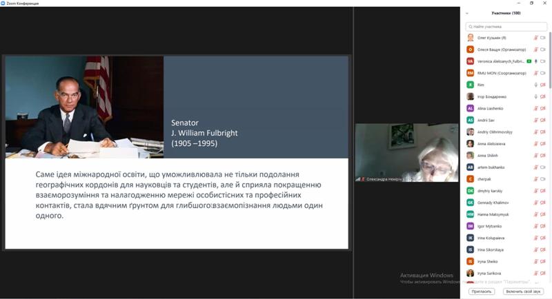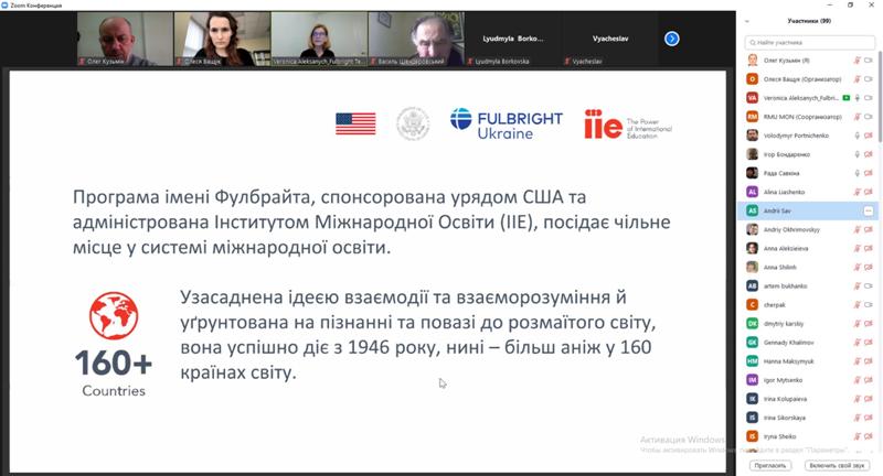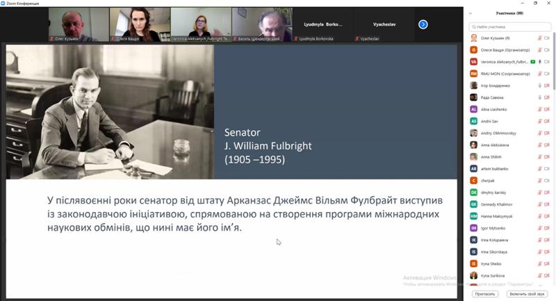 Під час онлайн-зустрічі з координаторкою Fulbright Scholar Programs Веронікою Алексанич вони детальніше дізналися про програму, умови участі у ній українських дослідників, вимоги до заявників, оформлення документів, а також ключові дати подання заявок до Fulbright Visiting Scholar Program.