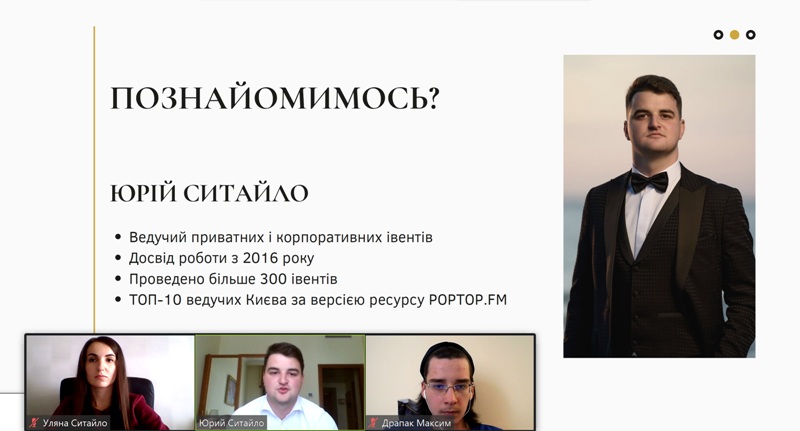 У ході вебінару обговорювали ключові принципи роботи постачальників івент-послуг, ціноутворення, регіональні відмінності проведення заходів, а також сезонність ринку івент-індустрії. Юрій Ситайло акцентував увагу на необхідності активного просування особистого бренду у зв’язку з посиленою конкуренцією та важливістю розвитку комунікативних навичок для співпраці із замовниками. Спікер розповів про шлях ведучого від тендерної заявки до самого проведення заходу. Також відзначив необхідність постійного інвестування часу, зусиль і коштів у особистий розвиток для збільшення власної конкурентоспроможності.