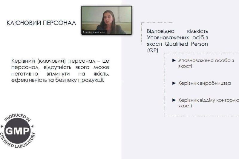 Випускниця докладно розповіла про всі нюанси належної виробничої практики. Тепер і нинішні студенти зможуть впевнено відповісти на запитання: щ таке GMP, які є критерії якості лікарських засобів, що потрібно для реалізації GMP, які особливості мають лікарські засоби порівняно з іншими продуктами.