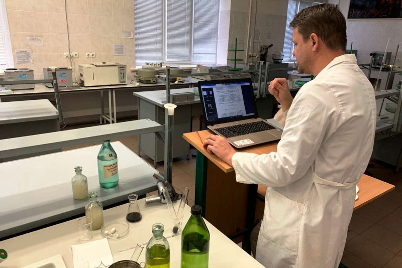 Викладачі дуже серйозно поставилися до проведення лабораторних робіт в умовах дистанційного навчання – для наглядної демонстрації усіх лабораторних тонкощів була використана додаткова камера, за допомогою якої здобувачі мали змогу ознайомитися з усіма етапами проведення аналізу щодо визначення активності протеолітичних ферментів у культуральній рідині та ферментних препаратах.