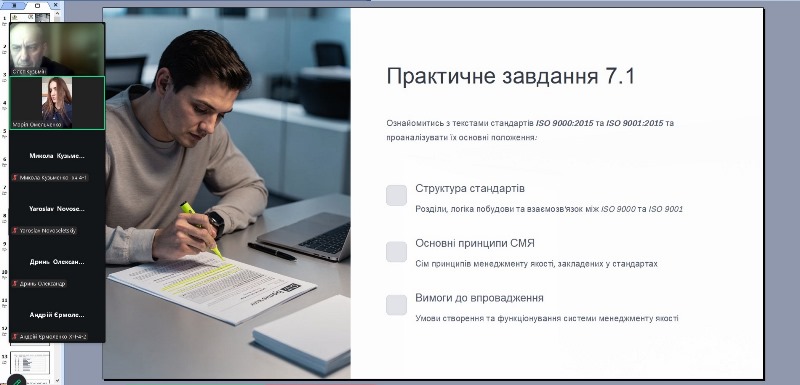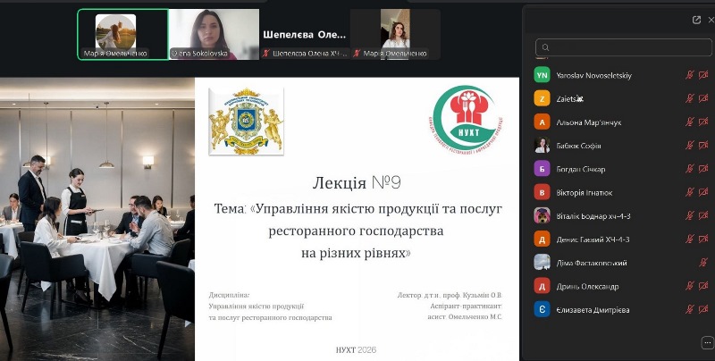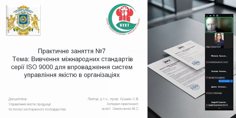 Зміст педагогічної діяльності включав проведення низки навчальних заходів, що засвідчують високий рівень академічної мобільності та професійної ініціативності. Зокрема, було реалізовано практичне заняття №7 «Вивчення міжнародних стандартів серії ISO 9000 для впровадження систем управління якістю в організаціях» (онлайн), лекцію №9 «Управління якістю продукції та послуг ресторанного господарства на різних рівнях» (онлайн), практичне заняття №10 «Еволюція методів управління якістю та сучасні підходи до їх впровадження» (офлайн). Важливим етапом стало здійснення викладацької діяльності на базі Харківського національного університету імені В.Н. Каразіна, де на запрошення доцентки кафедри готельно-ресторанного бізнесу і харчових технологій, кандидатки технічних наук Олени Соколовської аспірантка прочитала лекцію для здобувачів 3-го курсу освітньо-професійної програми «Готельно-ресторанна справа», що свідчить про розширення професійного середовища та інтеграцію в міжуніверситетський освітній простір.