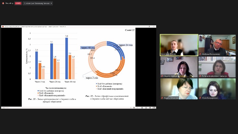 Анастасія Різник представила результати наукових досліджень із обґрунтування та удосконалення технології безглютенового хліба з вівсяного толокна з використанням структуроутворювачів. У дисертаційній роботі здобувачкою доведена доцільність спільного використання глюкано-дельта-лактону як структуроутворювача та молочного білку казеїну у технології хліба з вівсяного толокна.