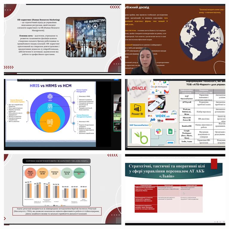 Захист кваліфікаційних робіт у такій професійній і доброзичливій атмосфері засвідчив якісний рівень підготовки студентів і їхню зацікавленість у розвитку HR-сфери. Тематика робіт охоплювала актуальні напрями управління персоналом, що демонструє прагнення здобувачів до впровадження сучасних HR-підходів у реальних бізнес-процесах. Зокрема, цікавими темами були ‒ впровадження технологій коучингу та наставництва працівників, розроблення заходів з благодійності і волонтерства, підтримка соціального партнерства, підсилення HR-маркетингу підприємства.