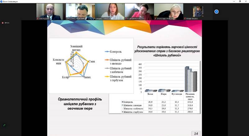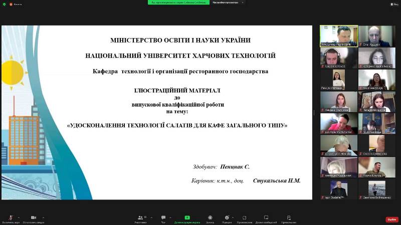 Екзаменаційна комісія у складі завідувачки кафедри технології ресторанної і аюрведичної продукції, професорки Олександри Нєміріч, гаранта освітньої програми, професора Олега Кузьміна, доцентки Людмили Мамченко та старшого викладача Володимира Польовика відзначила високий рівень підготовки здобувачів та їх професійні якості.