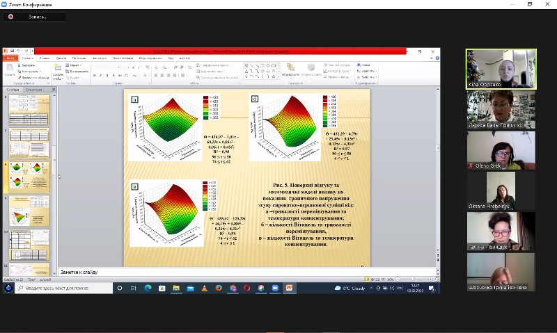 Участь у засіданні брали: голова спеціалізованої вченої ради, докторка технічних наук, професорка кафедри технології м’яса і м’ясних продуктів Ірина Шевченко, рецензентки – докторка технічних наук, професорка, завідувачка кафедри технології молока і молочних продуктів Галина Поліщук і кандидатка технічних наук, доцентка кафедри технології м’яса і м’ясних продуктів Оксана Топчій, офіційні опонентки – докторка технічних наук, професорка, деканка факультету харчових технологій та управління якістю продукції АПК Національного університету біоресурсів і природокористування України Лариса Баль-Прилипко та кандидатка технічних наук, доцентка кафедри харчових технологій і технологій переробки продуктів тваринництва Білоцерківського національного аграрного університету Оксана Гребельник. Також були присутні викладачі та співробітники нашого університету.
