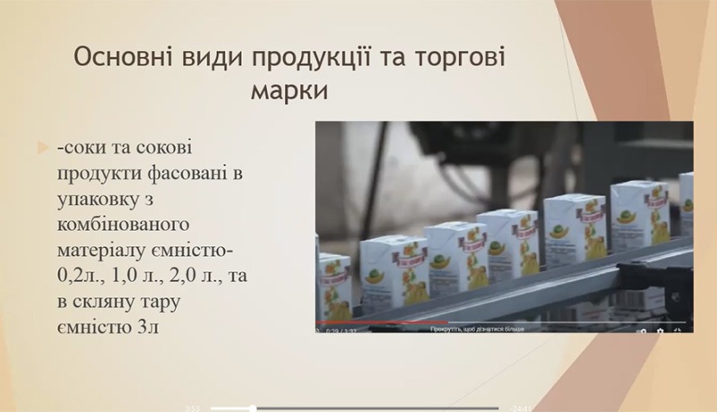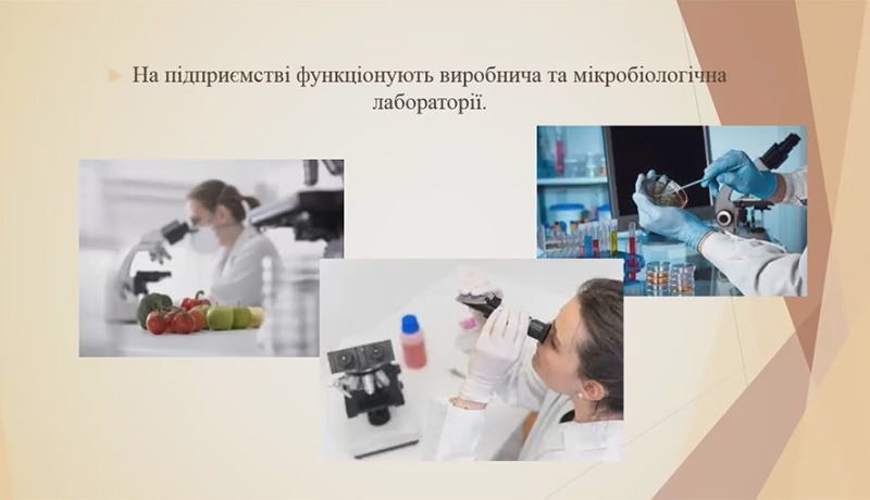Лекторка розповіла про особливості проведення технологічного процесу на ТОВ «ЕКО-СФЕРА», представила асортимент продукції, що отримують на підприємстві. Представлена презентація глибоко висвітлювала увесь спектр сучасного технологічного процесу підприємства і добре сприймалася аудиторією.