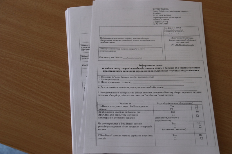 Перш ніж робити щеплення, працівники мобільної бригади проводили первинний медичний огляд – міряли температуру, пульс, тиск, розпитували про самопочуття, наявність хронічних хвороб, алергій тощо, а також розповідали про можливі побічні ефекти та інструктували, що робити у разі їх проявлення. Крім того, бажаючі щепитися заповнювали бланк інформованої згоди та оцінки стану здоров’я на проведення щеплення, а дані тих, хто не має декларації зі сімейним лікарем медичні працівники вносили до електронної бази.