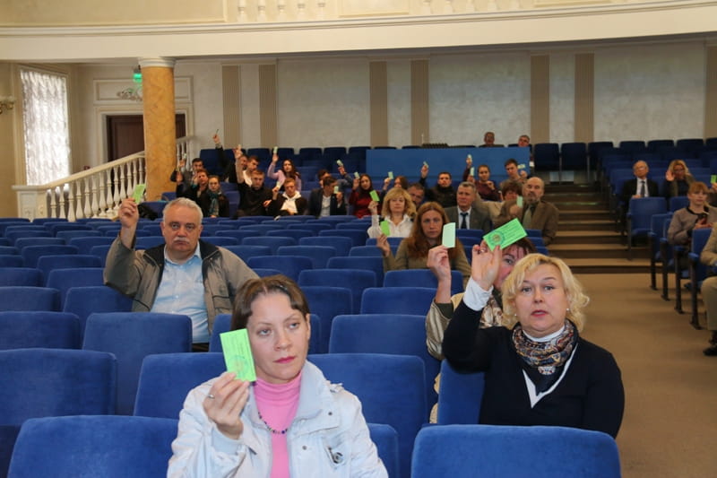 25 вересня в університеті відбулася конференція трудового колективу, в порядку денному якої було одне питання – обрання виборних представників з числа штатних працівників університету до складу вченої ради НУХТ, оскільки термін повноваження чинної вченої ради завершувався у вересні 2018 року.