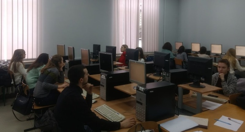 Традиційно змагання розпочалося з тестового випробування, яке відбулося на кафедрі інформатики за підтримки завідувача кафедри Сергія Грибкова.