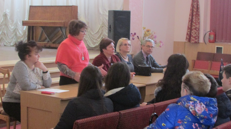 В актовій залі відбулася зустріч із директором коледжу Вірою Кузнецовою та її заступниками, які розповіли про переваги навчання в коледжі, про перспективи подальшого працевлаштування та розвитку кар'єри.