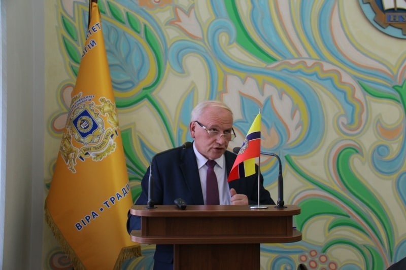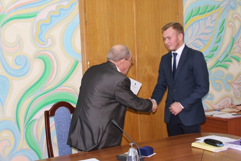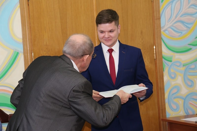 Подяки ректора з врученням цінного подарунку Анатолій Українець вручив студентці Навчально-наукового інституту економіки і управління Анастасії Чиженок і студенту факультету готельно-ресторанного та туристичного бізнесу Артему Волковинському.