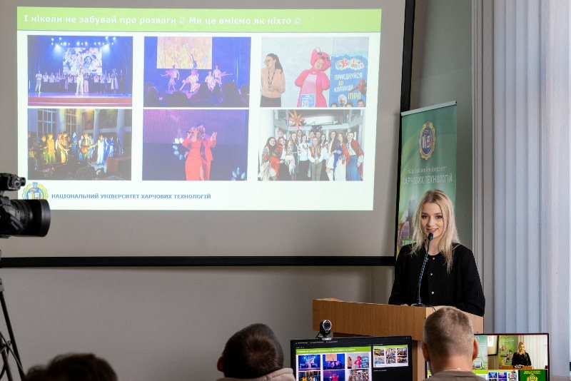 Докладно презентувала навчально-наукові інститути та факультети, що входять до структури НУХТ, і спеціальності та освітні програми, за якими в них здійснюється підготовка, відповідальна секретарка Приймальної комісії НУХТ Юлія Запорожець. А найбільше фахівчиня зосередилася на детальній інформації про умови вступу та особливості вступної кампанії 2026 року. Також вона проінформувала присутніх щодо концепції зимового вступу на нульовий курс і можливості отримання державних грантів для часткового або й повного покриття витрат на навчання для вступників-контрактників.