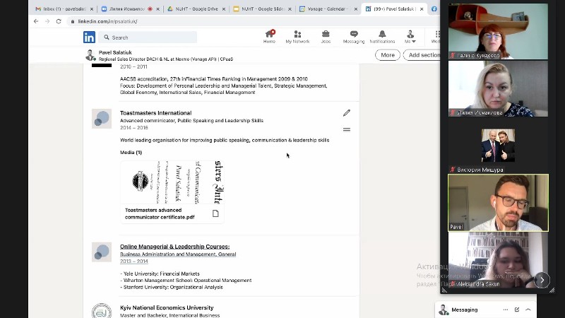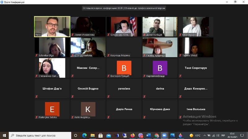 20 жовтня 2021 року кафедрою економічної теорії була проведена онлайн-зустріч здобувачів різних спеціальностей Навчально-наукового інституту економіки і управління з регіональним директором з продажу компанії «Vonage» (США) Павлом Салатюком (Німеччина).