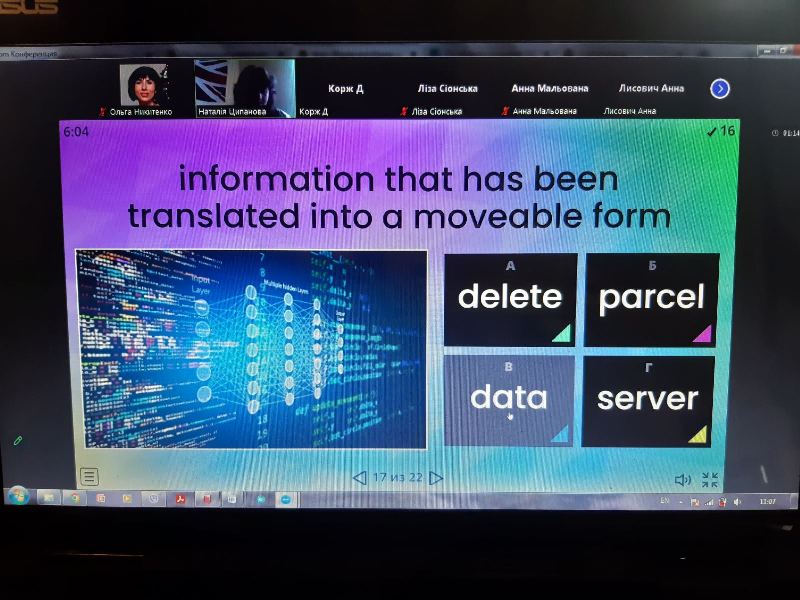 Викладачка кафедри ділової іноземної мови та міжнародної комунікації Наталія Ципанова провела відкрите практичне заняття «Computers in Business» з англійської мови для студентів 1 курсу напряму підготовки «Менеджмент», використовуючи сучасні та інноваційні технології.