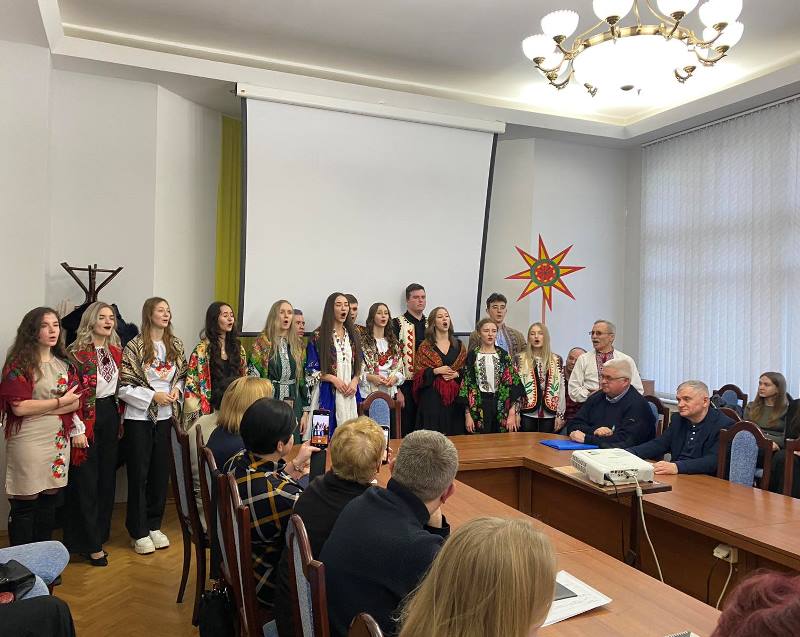 Завершення засідання вийшло по-справжньому святковим – приємним сюрпризом став візит наших митців, які спільно з фахівцями Студентського центру патріотичного виховання та культурного розвитку підготували невеликий різдвяний виступ.