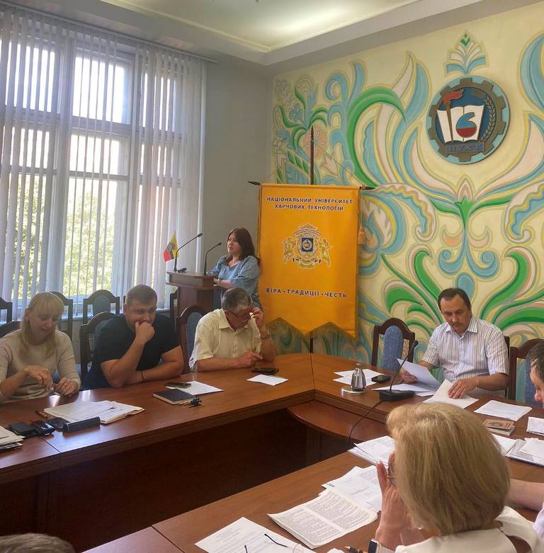 Першими розглянули кадрові питання – присвоєння вчених звань викладачам Інституту післядипломної освіти НУХТ. До вченої ради надійшли клопотання про присвоєння вченого звання професора кафедри переробки сільськогосподарської продукції Валентину Кочмарському; вченого звання доцента кафедри переробки сільськогосподарської продукції Володимиру Печку; доцентів кафедри економіки, обліку та фінансів Олександру Балдинюку і Володимиру Кучеренку.