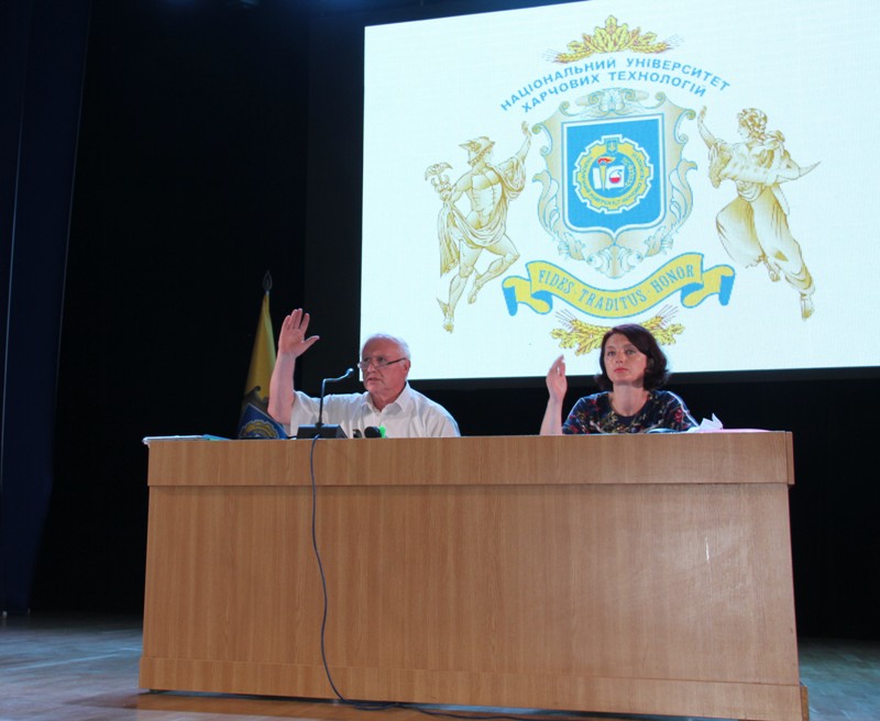 Першим розглянули кадрове питання – присвоєння вченого звання: доцента кафедри технології цукру і підготовки води Наталії Романченко, доцента кафедри інформаційних систем Миколі Костикову і доцента цієї ж кафедри Регіні Бойко. Кандидатів представила вчений секретар Наталія Ткачук. До складу лічильної комісії обрали завідувачку кафедри фізики, доцента Світлану Літвинчук, в.о. голови студентської ради університету Олександра Висоцького і в.о. голови студентської ради факультету біотехнології та екологічного контролю Ірину Ковшар.