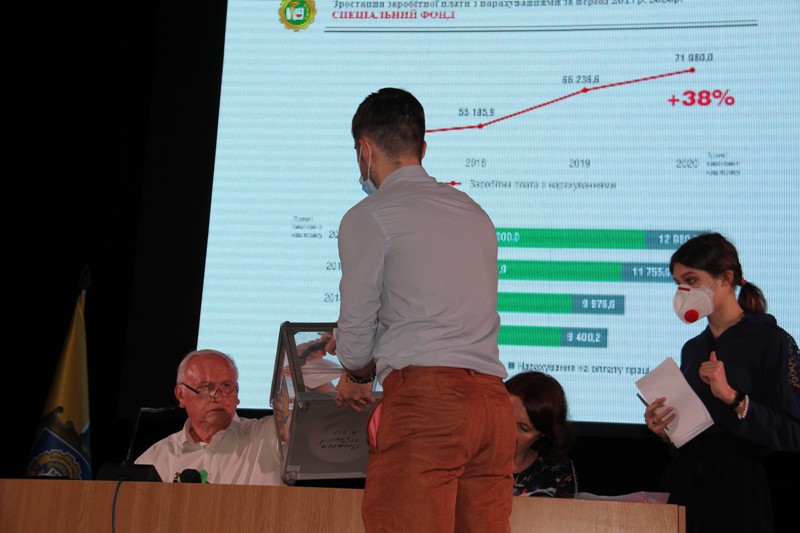 25 червня 2020 року у актовій залі з дотриманням санітарних протиепідеміологічних заходів відбулося останнє у цьому навчальному році засідання вченої ради університету. Оскільки у порядку денному було питання, що потребувало процедури таємного голосування, вчена рада повинна була зібратися особисто.