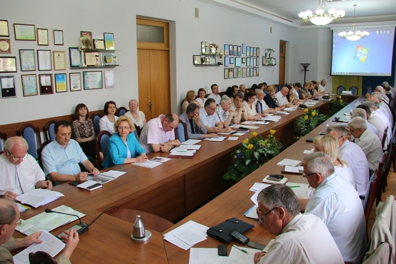 30 травня відбулося планове засідання вченої ради університету. Голова ради, ректор Анатолій Українець за традицією розпочав його з вітання членів вченої ради університету, що відсвяткували дні народження між засіданнями, та вручення атестатів і дипломів про присвоєння вчених звань і наукових ступенів.