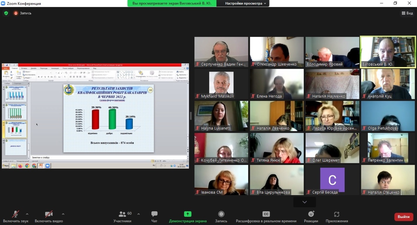 29 вересня 2022 року в дистанційному режимі відбулося планове засідання вченої ради університету.
