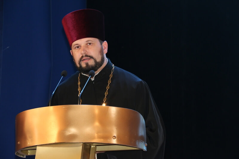До привітань долучився й передав напутні слова, благословення на навчання і молитовну підтримку від Патріарха всієї України-Русі Філарета почесний гість, священик української православної церкви Київського патріархату, вчений секретар Київської православної богословської академії Сергій Колот.