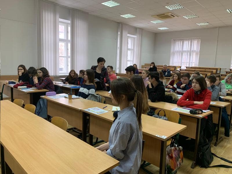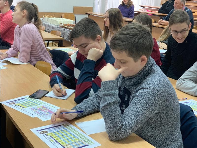 Далі лекторій розпочав роботу. Разом із доцентом Вірою Іщенко школярі з’ясовували будову атома та всі наукові аспекти, що пов’язані з цим питанням. Дослідили, що приховує Періодична система елементів та як правильно нею користуватись. Традиційно перевірку одержаних знань здійснювали за допомогою розв’язання тесту, сформованого із завдань ЗНО з хімії минулих років.