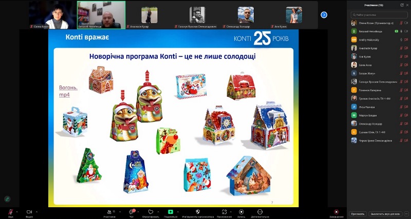 Велика увага під час лекції була зосереджена на реалізації ініціатив компанії щодо впровадження різних форматів упаковки товарів для покращення їх презентації та привернення уваги споживачів. Яскрава упаковка дизайну новорічних подарунків нікого з присутніх на лекції не залишила байдужим. Також лектор акцентував увагу на дизайні для виробів компанії, що вже стали візитівкою нашої незламної країни.