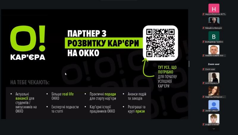 На завершення зустрічі учасники отримали практичні бонуси у вигляді можливості безкоштовно пройти курси від ОККО Університет та зареєструватися на кар’єрні консультації.