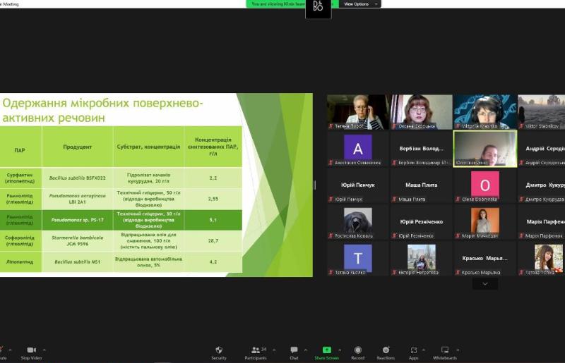 Презентація Юлії Іванченко висвітлювала дослідження впливу ПАР мікробного походження на властивості утворених за їх участі біогенних наночастинок металів. Враховуючи, що такі наночастинки мають високу біологічну активність, посилену завдяки антимікробним та антиадгезивним властивостям біосурфактантів, їх пропонується використовувати як біопрепарат для боротьби з фітопатогенами сільськогосподарських культур.