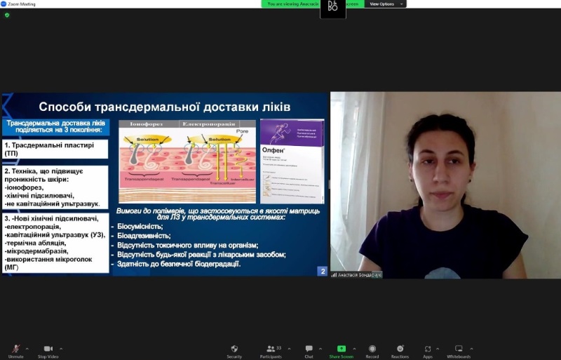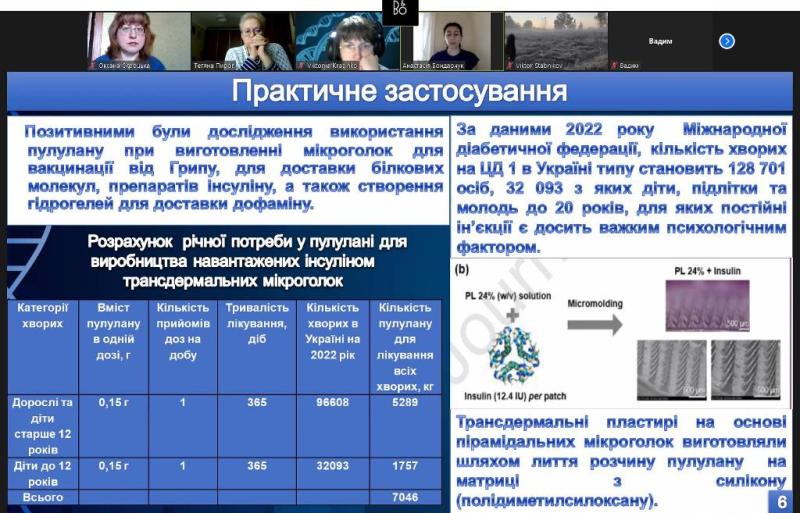 Доповідь Анастасії Стеценко була присвячена трансдермальним системам на основі мікроголок, які складаються з полісахариду пулулану, що дозволяє підшкірно вводити інсулін, виключаючи інвазивні процедури і ризики, пов’язані з ними.